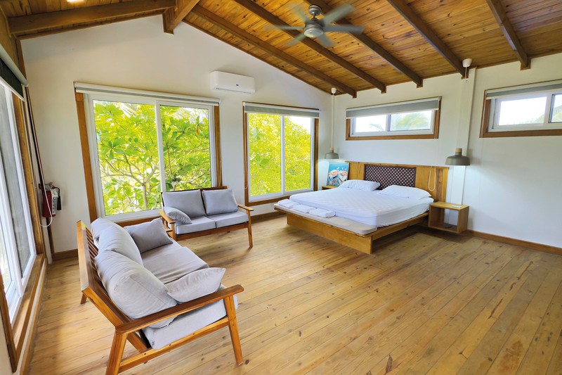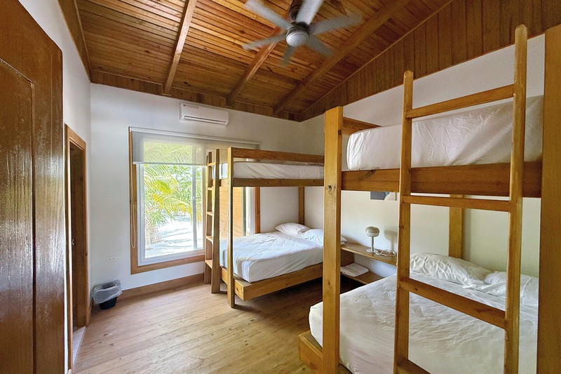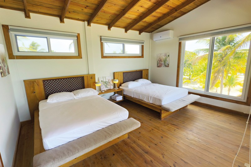 Cayo Largo ist ein kleines, privates, karibisches Refugium für bis zu 18 Gäste und garantiert die Privatsphäre, die Sie suchen. Im Erdgeschoss befinden sich drei Zimmer, jeweils mit zwei Twin- und zwei Queensize-Betten (Doppelstock-Betten), alle mit eigenem Bad, sowie ein gemeinsames Wohnzimmer, eine Küche und ein Esszimmer. Im Obergeschoss gibt es zwei Zimmer: eines mit zwei Queensize-Betten und eine Suite mit einem Kingsize-Bett. Alle Zimmer verfügen über Klimaanlage, WLAN (Starlink) und Ventilatoren. Eine gemeinsame Terrasse mit Bar und Loungebereich bietet Blick auf Strand und Meer.
