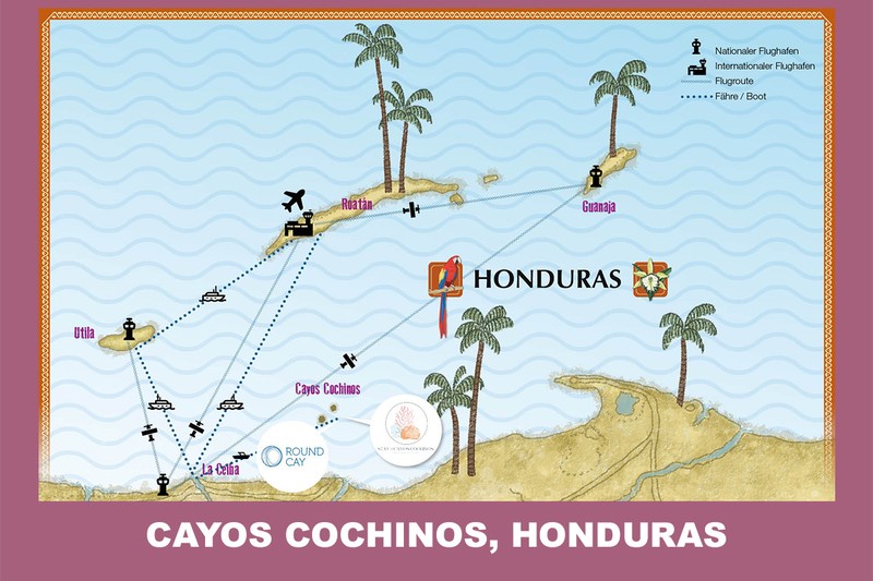 Cayo Largo erreicht man mit einem Boot ab La Ceiba (ca. 60 Minuten) oder mit dem Helikopter vom Flughafen San Pedro Sula (ca. 60 Minuten) bis Cayo Menor. Darauf folgt eine kurze Fahrt per Boot (10 Minuten) bis zur Insel.